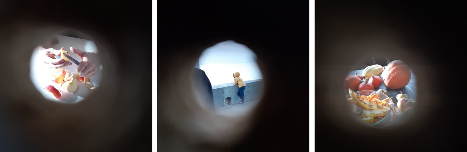 vous pouvez faire ce rond tout simplement avec vos doigts, regarder dans un rouleau de sopalin, par un trou dans une chaussette ou tout ce que vous aurez sous la main et qui vous semblera convenir.